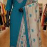 The ensemble is completed with a pair of solid teal blue trousers that are tailored for a relaxed and comfortable fit, ensuring all-day wearability. What truly elevates this outfit is the breathtaking floral printed dupatta. Made from a sheer, lightweight fabric, the dupatta features a bold and artistic print with large floral motifs in a beautiful mix of colors, including soft pinks, yellows, and blues. The borders of the dupatta have a distinct, intricately woven pattern in a contrasting color, creating a striking visual and adding a touch of sophistication. This suit set is a masterpiece that combines traditional elements with a modern aesthetic, making it a must-have for your ethnic wear collection.