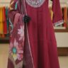 The true highlight of this collection is the meticulous embroidery and embellishments. Each kurta’s yoke and hemline are adorned with intricate patterns, featuring a mix of thread work, mirror work, and subtle metallic accents. For example, the maroon set features elegant turquoise and white thread work, while the green set has vibrant pink and mirror work. The blue kurta boasts stunning golden and pink embroidery, and the purple one shines with silver and white detailing. These beautiful patterns are not just on the kurta; a matching, embroidered border also adorns the hemline, tying the look together with a cohesive and polished finish.